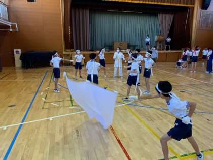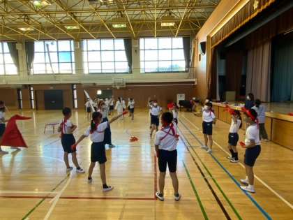 それぞれの色で練習をしています。団長は衣装を着て、全体もますます気合いが入ってきました。