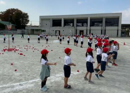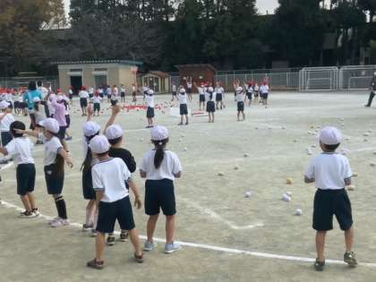 1年生の玉入れはその前のダンスと、白玉と赤玉以外の黄色玉の数も見所です。