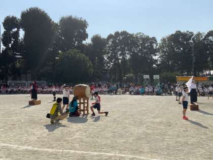 応援合戦です。応援団長の掛け声でそれぞれの組が一体となっていきました。