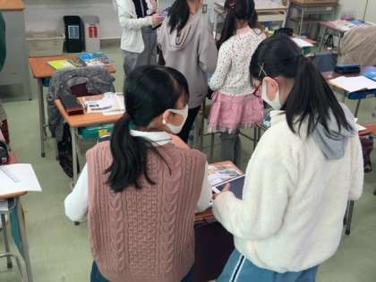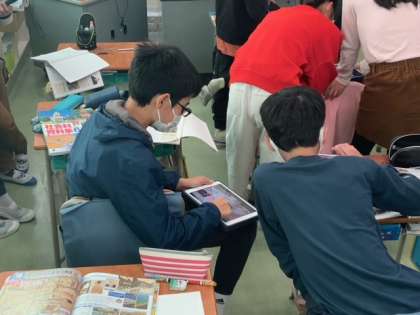 社会科で歌舞伎や浮世絵とはどのようなものだったのかを教科書や資料集から調べて、考えを交流させています。