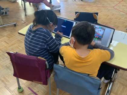 あつまれ!おたすけキャラクターで、タブレットを使ってキャラクター図鑑をつくっています。