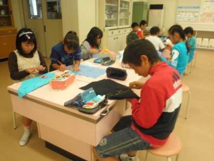 展覧会に向かて、家庭科では裁縫に挑戦中です。