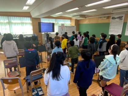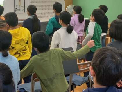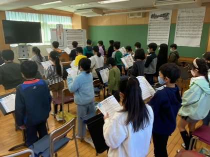 12月の歌「せいじゃがまちにやってくる」を英語で音楽に乗って歌っています。一転して「オーラリー」では、妖精をイメージして美しく響きのある声で歌えています。