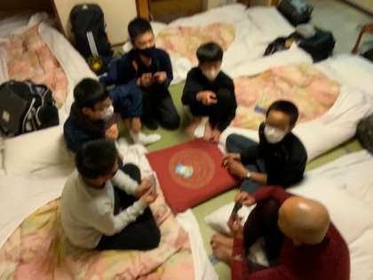 夕食後は、先生方に荷物整理のOKをもらった部屋からそれぞれ寛いでいました。消灯時間も守ることができています。