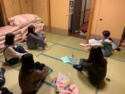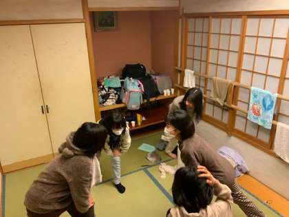 朝会の続きです。各部屋では放送をよく聞いて行動できています。