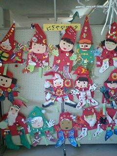 図工室の前の廊下は、可愛いサンタクロースでいっぱい。3年生が一生懸命作りました。廊下が明るくにぎやかです。