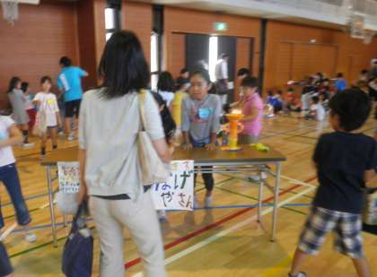 1,2年生は、グループを作って、いろいろなゲームなどに取り組んでいました。2年生が1年生に教えてやる方法は、毎年恒例です。みんな、一生懸命にやっていました。