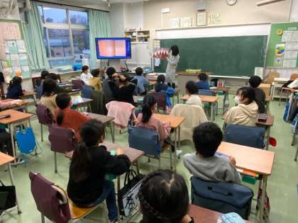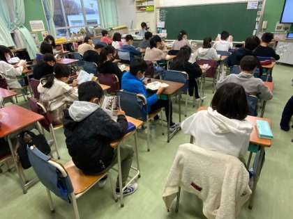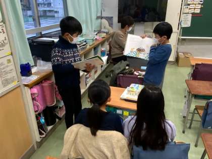 朝読書です。低学年は、保護者の方々による読み聞かせです。ご協力いただきありがとうございます。3年生のクラスでは、1年生への読み聞かせの練習をしていました。4年生以上は、自分の選んだ本を静かに読んでいます。