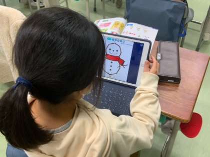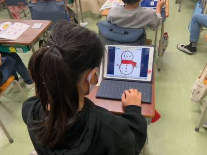 外国語活動でグリーティングをつくり、友達と交換していきます。送る時に「This is for you.」受ける時に「Thank you.」と言います。
