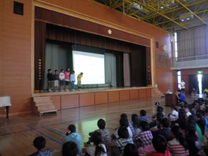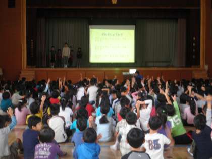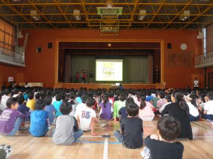 今日は、図書委員会の発表でした。今週が読書週間ということもあり、低・中・高学年に分けてお勧めの本を読み聞かせしてくれました。(一部ですが…)