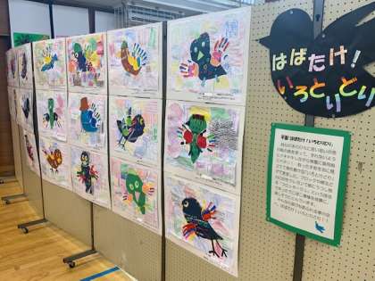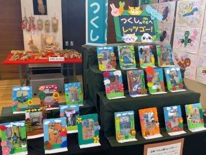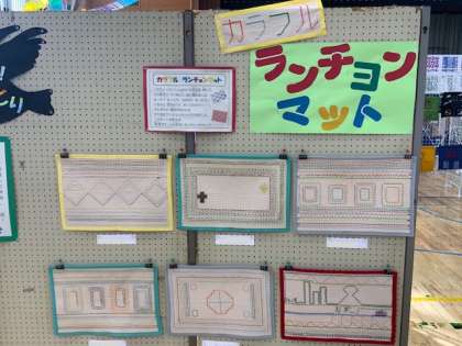 つくし学級からは、「カラフル ランチョンマット」「つくしの森へレッツゴー!」「はばたけ!いろとりどり」の出品です。