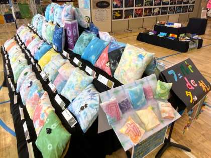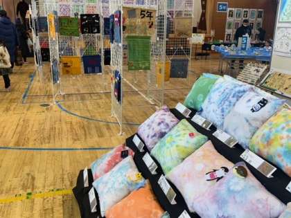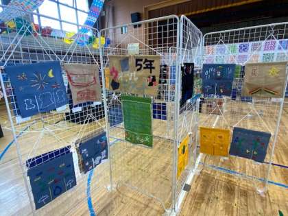 5,6年生は、家庭科作品も出品しています。5年生が「ウオールポケット」6年生が「クッションカバー」の出品です。