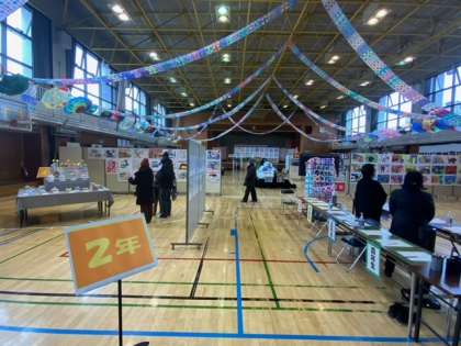 展覧会3日目、今日が最終日です。学校運営委員の皆様が受付をしてくださっています。