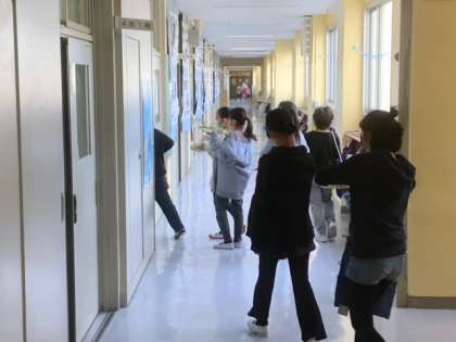 ?3日目に渡って開催してきましたとても素敵な展覧会でしたが、終わりになり片付けです。自分の作品を教室等に運びます。今日以降に自宅へ作品を持ち帰ります。5年生が大きな道具の撤収の手伝いをしてくれました。次期の学校のリーダーとしてがんばっています。