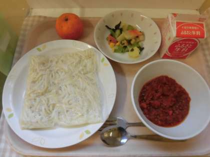 ☆今週は、全国学校給食週間です。昔の給食は、ずっとパンばかりの給食でしたが、昭和38年にはじめて「ソフト麺」が登場しました。ソフト麺は、学校給食向けに開発された日本特有の麺になります。今日は昔なつかしい、ソフト麺をみんなで食べました。