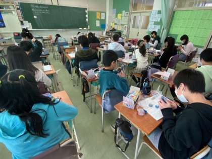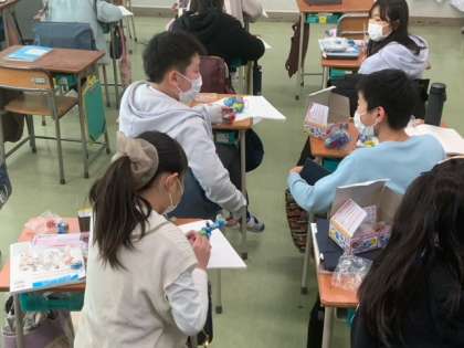理科で、LEDよりも豆電球の方がなぜたくさん電気を使うのかをキットを使って試しながら考えていきます。