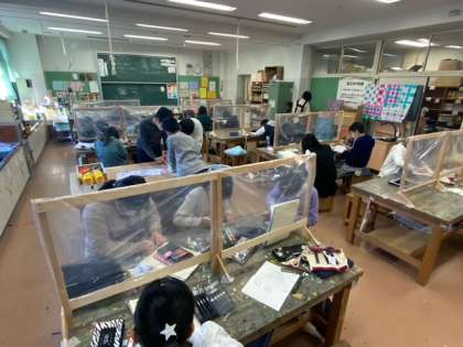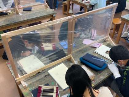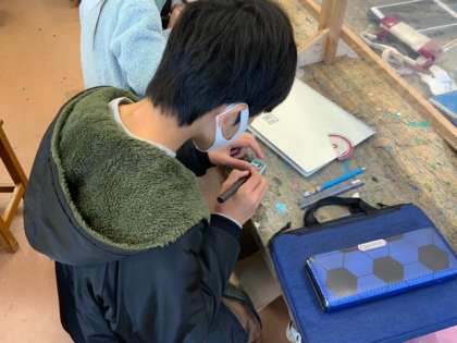 図工で自分の名前をデザインしてハンコを作っていきます。デザインしたものを逆にして彫刻刀で彫り進めていきます。