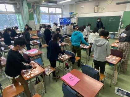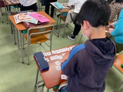外国語の授業で、アルファベットの小文字をaから順番に並べていきます。50秒弱で並べられる子どももいました。