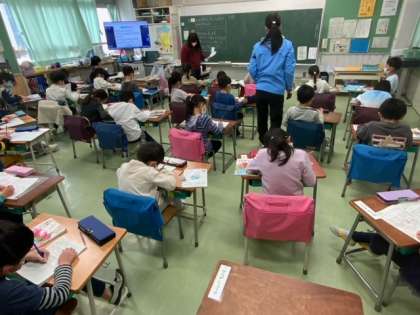 算数で文章題に書かれている内容を式以外で図や絵などでどのように表すことができるかを考え、発表しています。