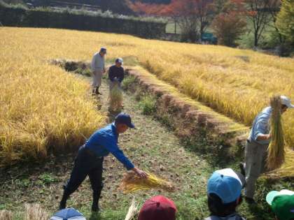 手で刈り取る方法と機械で刈り取る方法を見せていただきました。