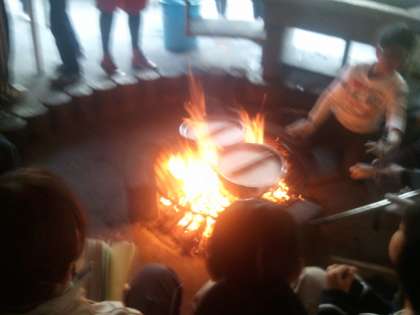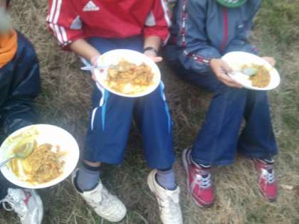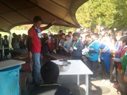 カレーライス作りが始まります。最初に補助員の方から作り方を教えていただいてから、作り始めました。