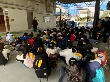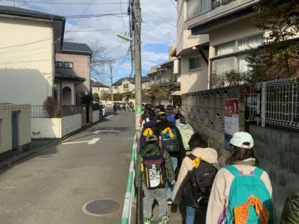 ?6年生が社会科見学で、国会議事堂と江戸東京博物館に行きます。出発式を行い、仙川駅近くからバスに乗り込み、まずは国会議事堂を目指します。
