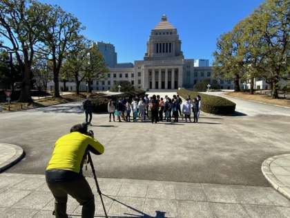 国会議事堂前で記念撮影をした後に、江戸東京博物館に向かいます。