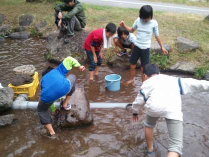 マスをつかまえるのは、難しく、さっとつかまえる子もいれば、なかなかつかまえられない子もいて、大騒ぎです。