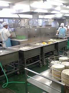 今日は二学期の給食終了日です。メニューは三色ピラフ、鶏肉のてりやき、ゆでブロッコリー、じゃがいものクリーム煮。クリスマスをちょっぴり意識しています。給食が終わった後の給食室は大忙しです。6人の調理主事が汗だくになりながら片付けをします。