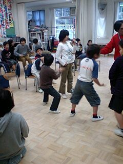 つくし学級です。BGMに合わせて「風になりたい」を熱唱しています。各自、音楽に合わせて自然と体が動いてしまいます。