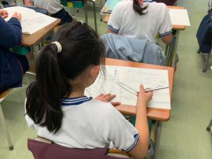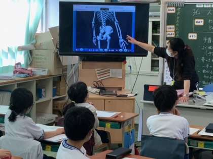 理科で手の骨がどのようになっているか予想して絵にも描いて予想を立ててきました。今回は教科書や大型テレビの資料を見て、わかったことや気付いたことを発表しています。