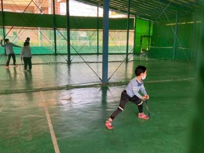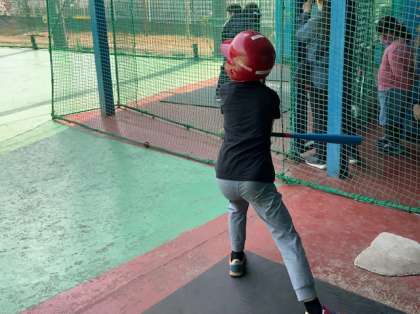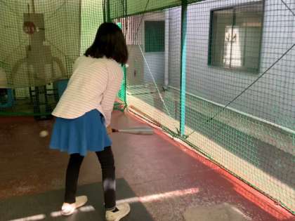 世田谷スポーツプラザに到着しました。テニスやバッティングを楽しんでいます。ご厚意で貸し切りにしてくださっています。