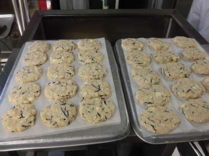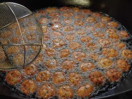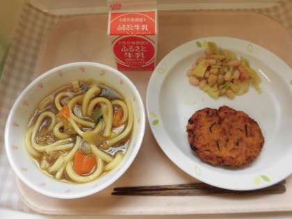 ☆今日は「手作りさつまあげ」です。材料はタラのすりみ イカのすりみ たまねぎ にんじん ひじき しょうゆ 酒 パン粉 かたくりこ が入っています。1つ1つ成形をするのが大変な、さつまあげでした。
