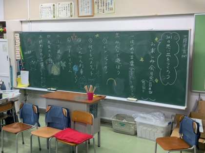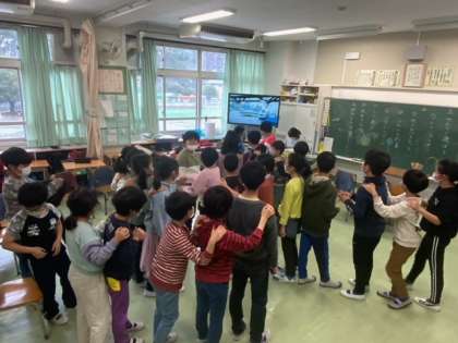 お楽しみ会をしています。司会も進行も子どもたちが進めています。とても楽しそうです。