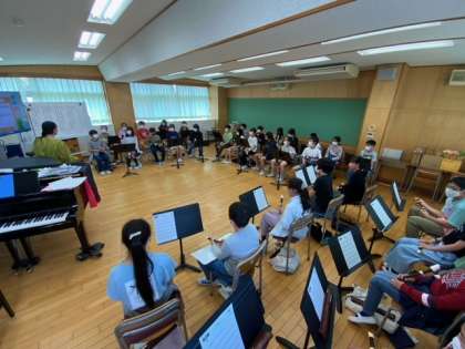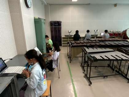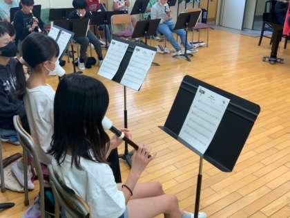 音楽のリコーダーで「茶つみ」の曲に取り組んでいきます。タブレット端末から伴奏が流れて、それに合わせて吹きます。カラオケのように採点も出てきます。