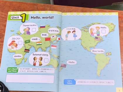 外国語の学習で、世界各国のあいさつを動画などをみて学んでいきます。