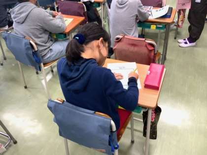 離任式に向けてお世話になった先生方や主事さん方にお手紙を書いています。