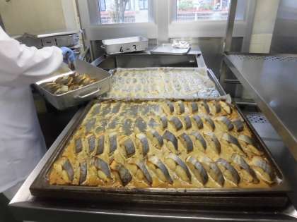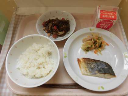 ☆今日の献立は「さわらの西京焼き」です。今が旬の魚となっています。西京味噌にさわらを漬け込みオーブンで焼いています。