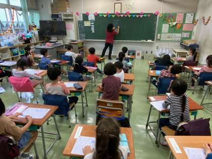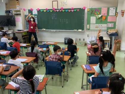 国語で「と」を取り上げています。書く時に気をつけることを確認して、「と」がつくことばを考えて発表しています。
