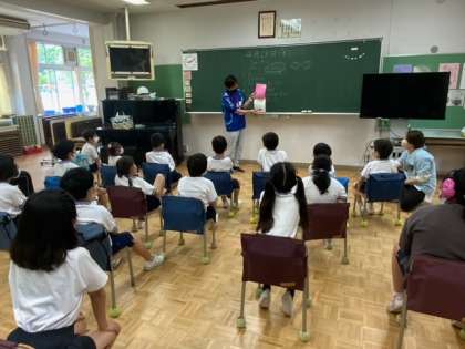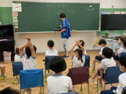全体での朝の会です。今日の予定を確認しています。国語がグループ学習であることの確認があると歓声が上がりました。それよりも歓声が大きかったのが離任式です。お世話になった先生が来校するからです。
