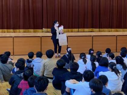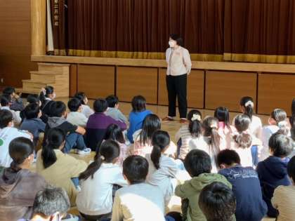 放送での離任式です。教職員は、4月1日まで自分の進退を口にすることができません。お別れやお礼を言える機会が今日になります。代表でお礼のことばを伝え、教職員から近況や烏山小学校の子どもたちへ向けてのメッセージが伝えられました。その後、体育館では,6年生へ向けて特にお世話になった先生方からお話しがありました。