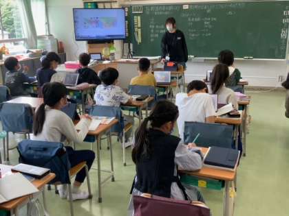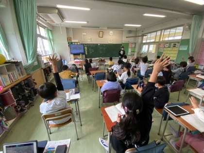 社会科の「都道府県を調べよう」で、東京都の交通網はどうなっているかについて考えを発表しています。