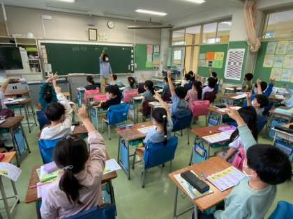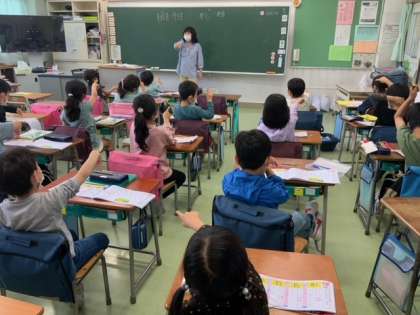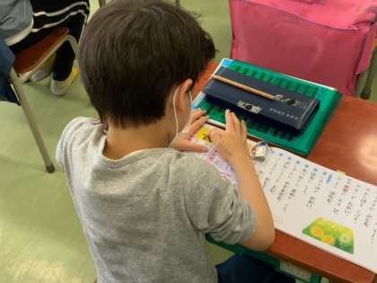 国語で新しく習う漢字の学習をしています。「長」と「形」の漢字です。書き順やとめ、はね、はらいにも気をつけていきます。「長」の一画目は縦棒です。