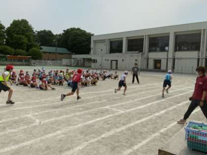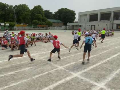 放課後にもリレー選手は集まって練習をしています。入念にバトン練習をして、本番と同じように走っています。