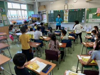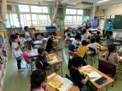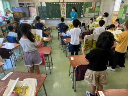国語「はなのみち」の音読です。姿勢を正しく、口を大きく開けて、ゆっくり読んでいきます。自分の気に入った箇所を順番に読む練習をしています。