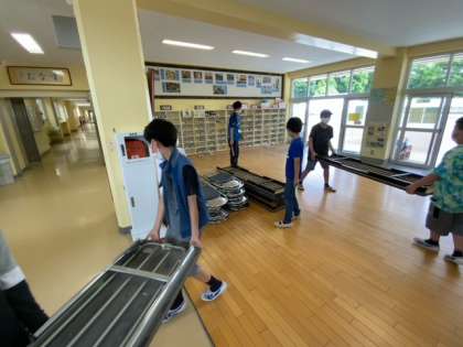 運動会係児童による準備が進んでいます。午前中は大雨でしたが、上がってきました。明日はいい天気になりそうです。