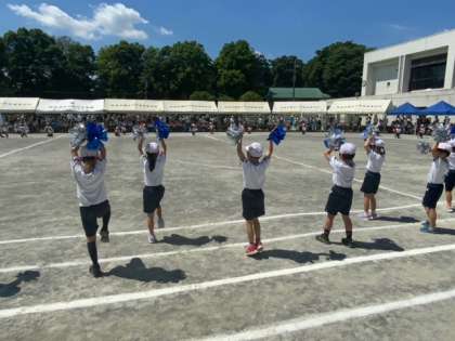 2年生の表現 ひびけ!キラキラ☆ダンスです。子どもたちの笑顔もキラキラ輝いています。