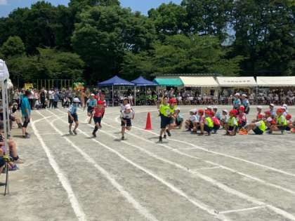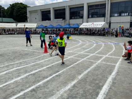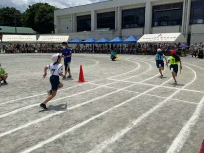 高学年紅白対抗リレー 手に汗握るレースが展開されています。