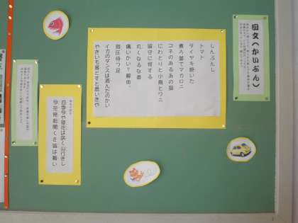 第四昇降口のことばの広場には、「回文」が貼ってありました。