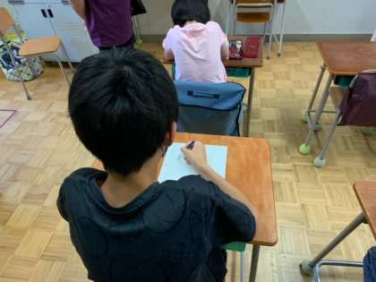 生活単元学習での朝の会です。日直さんが前で今日の予定や給食のメニューや、全員の体調を聞いていきます。とても上手に司会をしています。その後、日課帳を丁寧に書いています。今日のミニ☆べんは、はじめに「しん」の付く言葉です。